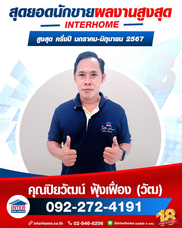อินเตอร์โฮมสุดยอดผลงานสูงสุด 6 เดือนแรกของปี2567 ทุกความสำเร็จคือผลลัพธ์ของความพยายาม ความมุ่งมั่น ขอบคุณทีมงานทุกภาคส่วนสำหรับความพยายาม และความทุ่มเทอย่างเต็มที่ ขอบคุณลูกค้าทั้งผู้ฝากขายบ้าน ลูกค้าผู้ซื้อบ้านที่ให้ความไว้วางใจ ซื้อบ้าน ฝากขายบ้านกับเราอินเตอร์โฮม เราจะมุ่งมั่น และพัฒนาต่อไป.