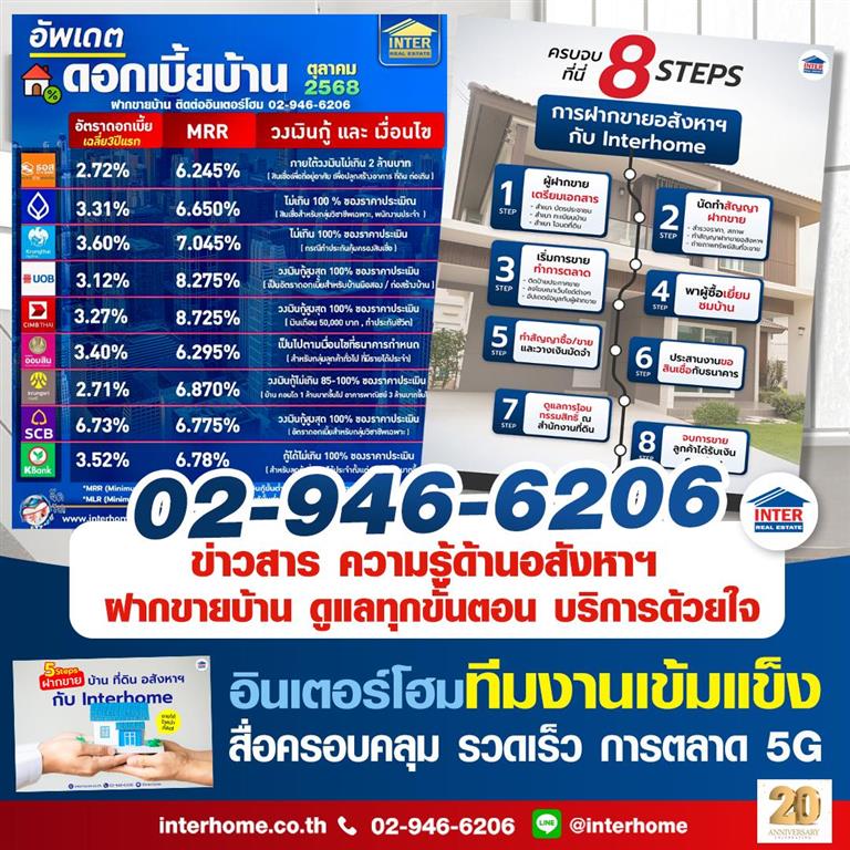 29ตุลาคม 2568 เคล็ดลับความสำเร็จ วิธีพิชิตเป้าหมาย คือ คุณต้องพร้อมและลงมือทำอย่างตั้งใจ ที่อินเตอร์โฮม ความสำเร็จเกิดขึ้นได้กับทุกคน : อินเตอร์โฮมเราประชุมประจำสัปดาห์ เพื่อวิเคราะห์ทรัพย์สิน ดึงจุดขายสร้างจุดเด่น เข้าใจความต้องการของผู้ซื้อและผู้ขาย สร้างการตลาดเชิงรุกทั้งออนไลน์และออฟไลน์ ด้วยฝ่ายขายและการตลาดมืออาชีพ กว่า 150 คน ขอบคุณลูกค้าทุกท่านที่ฝากขายบ้าน ซื้อบ้านกับอินเตอร์โฮม เป็นจำนวนมากในสัปดาห์ที่ผ่านมา.