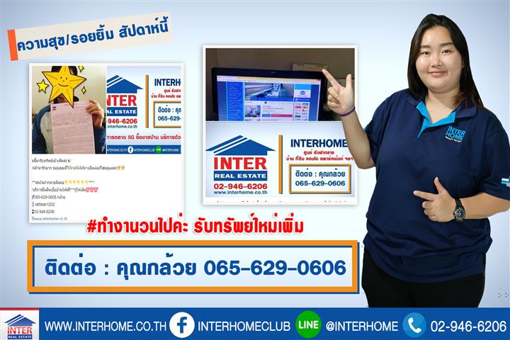 #ยื่นสินเชื่อ #ธุรกรรมกรมที่ดิน เราเป็นมากกว่าตัวแทนขายบ้าน เราดูแลด้วยทีมงานมืออาชีพ เราคือ ที่ปรึกษาด้านอสังหาริมทรัพย์ เราช่วยขายบ้านให้ลูกค้าได้ราคา และได้ไวที่สุด การตลาดแน่นๆ ขายบ้านไม่ออก บอกอินเตอร์โฮม