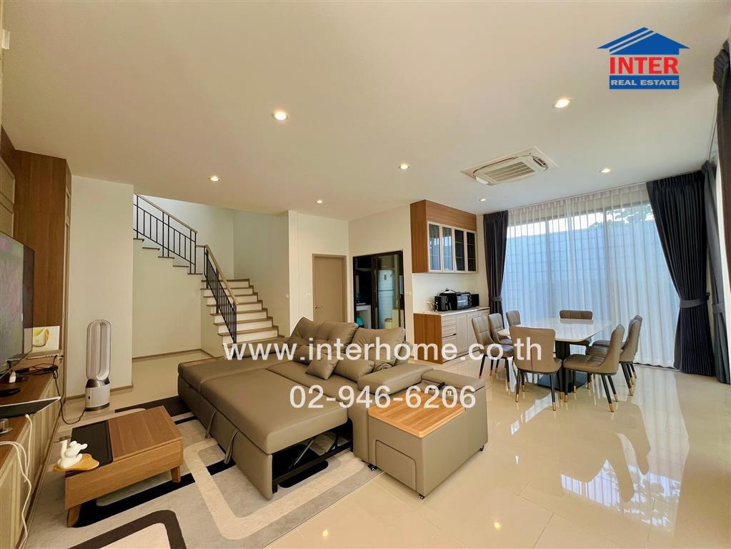 * Common Area กว้าง สามารถจัดเป็นพื้นที่นั่งเล่นขนาดใหญ่ และวางโต๊ะรับประทานอาหารได้ถึง 6 – 8 ที่นั่ง พร้อมห้องน้ำ Powder Room ที่อยู่ติดกับโซน Service ด้านหลังบ้าน บริเวณ Common Area จะได้ช่องแสงจาก 2 ฝั่ง ทำให้ภายในดูโปร่งกว้างมากขึ้น