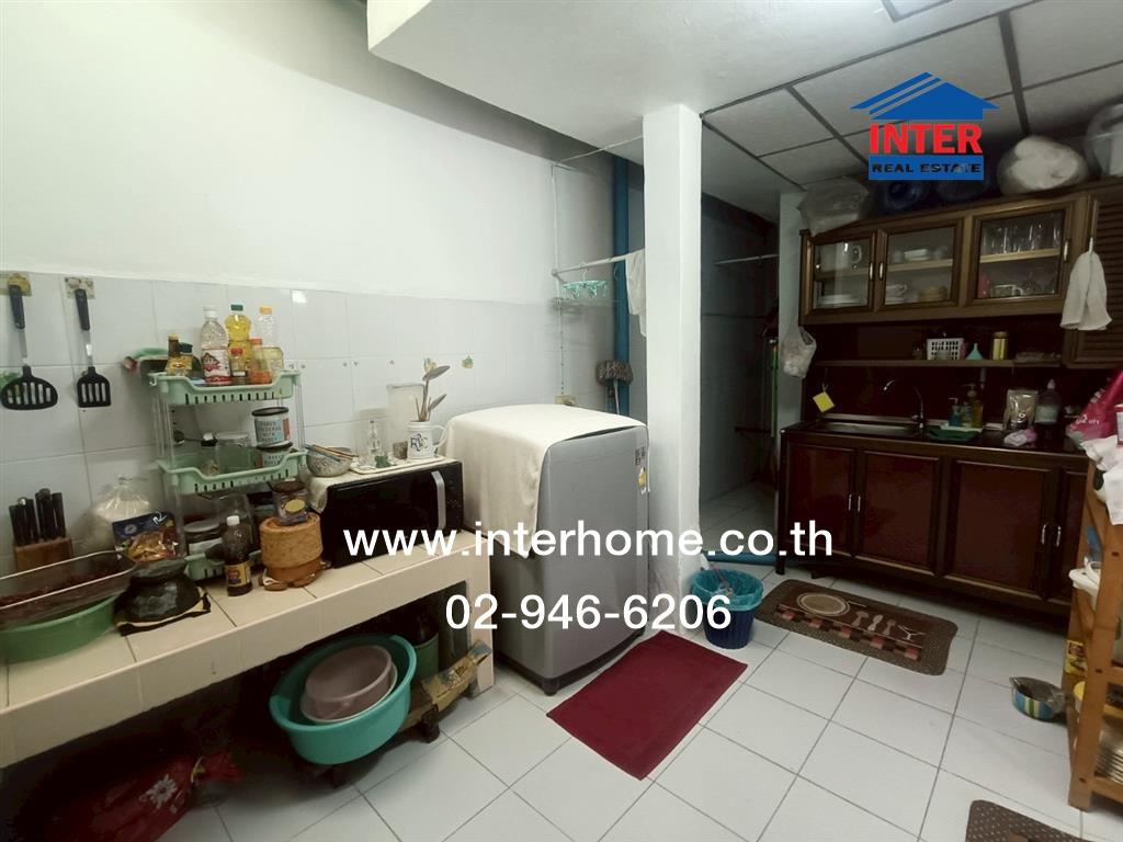 • ชั้น 1 มีห้องโถงขนาดใหญ่ ด้านหลังต่อเติมครัว มีห้องน้ำ 1 ห้อง ด้านหน้าต่อเติมที่จอดรถ
