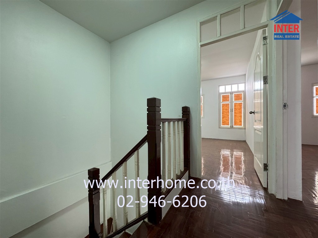 • หน้าบ้านหันทิศเหนือ อายุบ้าน 21 ปี ตัวบ้านทาสีใหม่ มีพื้นที่หน้าบ้านกว้าง อยู่ถนนเมน 4 เลนชั้นล่างปูพื้นกระเบื้อง ชั้นบนปูพื้นปาร์เก้ ตัวบ้านอยู่ช่วงหน้าหมู่บ้าน