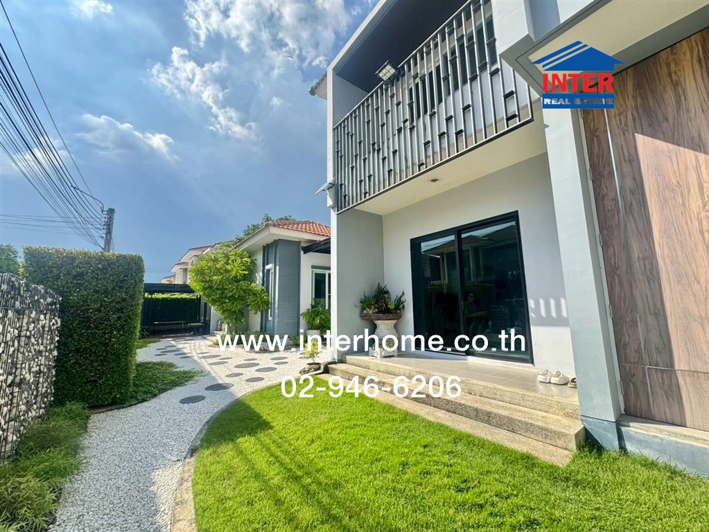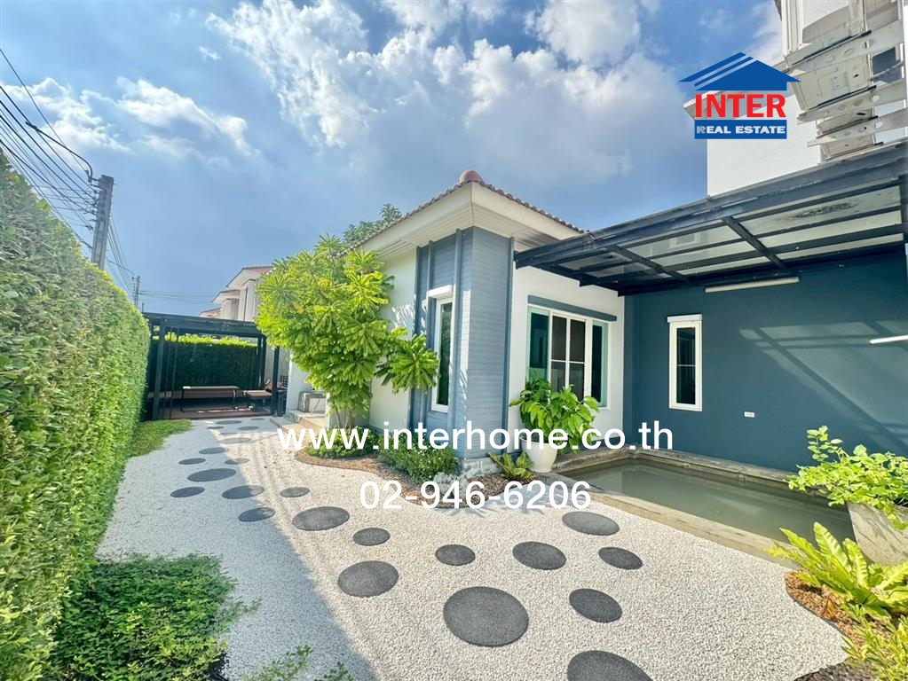 • -บ้านสวย ตกแต่งพร้อมอยู่ มีสวนหน้าบ้านตกแต่งอย่างร่มรื่นสวยงาม