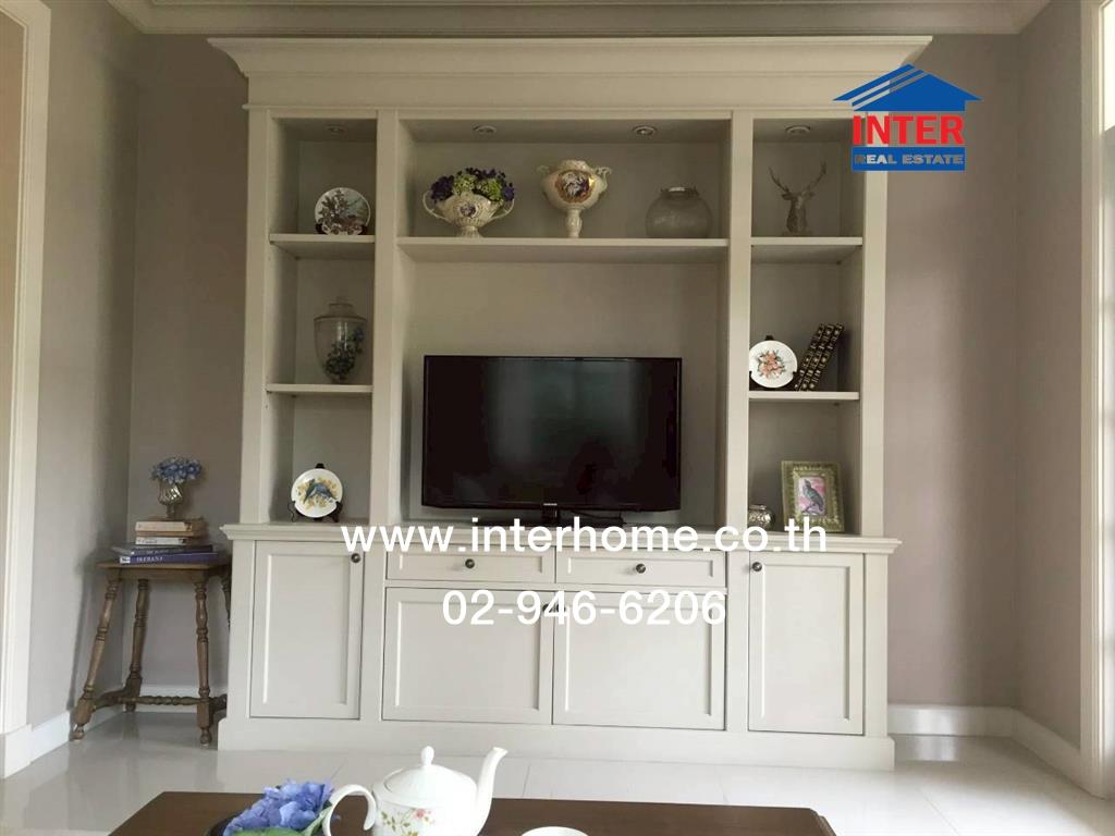 • บ้านสวยพร้อมอยู่ มีสวนในบ้าน จอดรถในบ้านได้ 2 คัน มีห้องอเนกประสงค์สามารถทำเป็นออฟฟิศหรือเป็นห้องนอนที่ชั้น 1 ได้ มีห้องนั่งเล่นแยกส่วนกับส่วนทานอาหารและเคาน์เตอร์ครัว มี Walk-In Closet ห้องใหญ่ พื้นที่เยอะมาก แถมแอร์ 6 เครื่อง ตู้เย็น ตู้บิวค์อิน ชุดโต๊ะทานข้าว ชุดโซฟา ชั้นวางทีวี เครื่องดูดควัน เตียงนอน 2 เตียง เครื่องทำน้ำอุ่น ตู้เสื้อผ้า