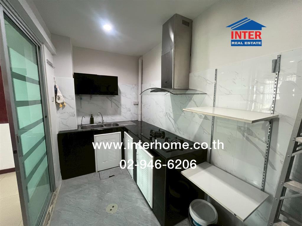• ห้องครัว เคาน์เตอร์ปูกระเบื้องอย่างดี บิวท์อินพร้อมใช้งาน มีประตูกั้นขึ้นชั้นสองเป็นสัดส่วน ชั้น 2 มีห้องอเนกประสงค์ 1 ห้อง สามารถทำเป็นห้องประชุมได้ ชั้น 3 เป็นห้องพัก 2 ห้องนอน พร้อมเฟอร์นิเจอร์  1 ห้องน้ำ ติดตั้งแอร์ทุกห้อง ทั้งหมด 5 เครื่อง พร้อมเฟอร์นิเจอร์บางส่วน
