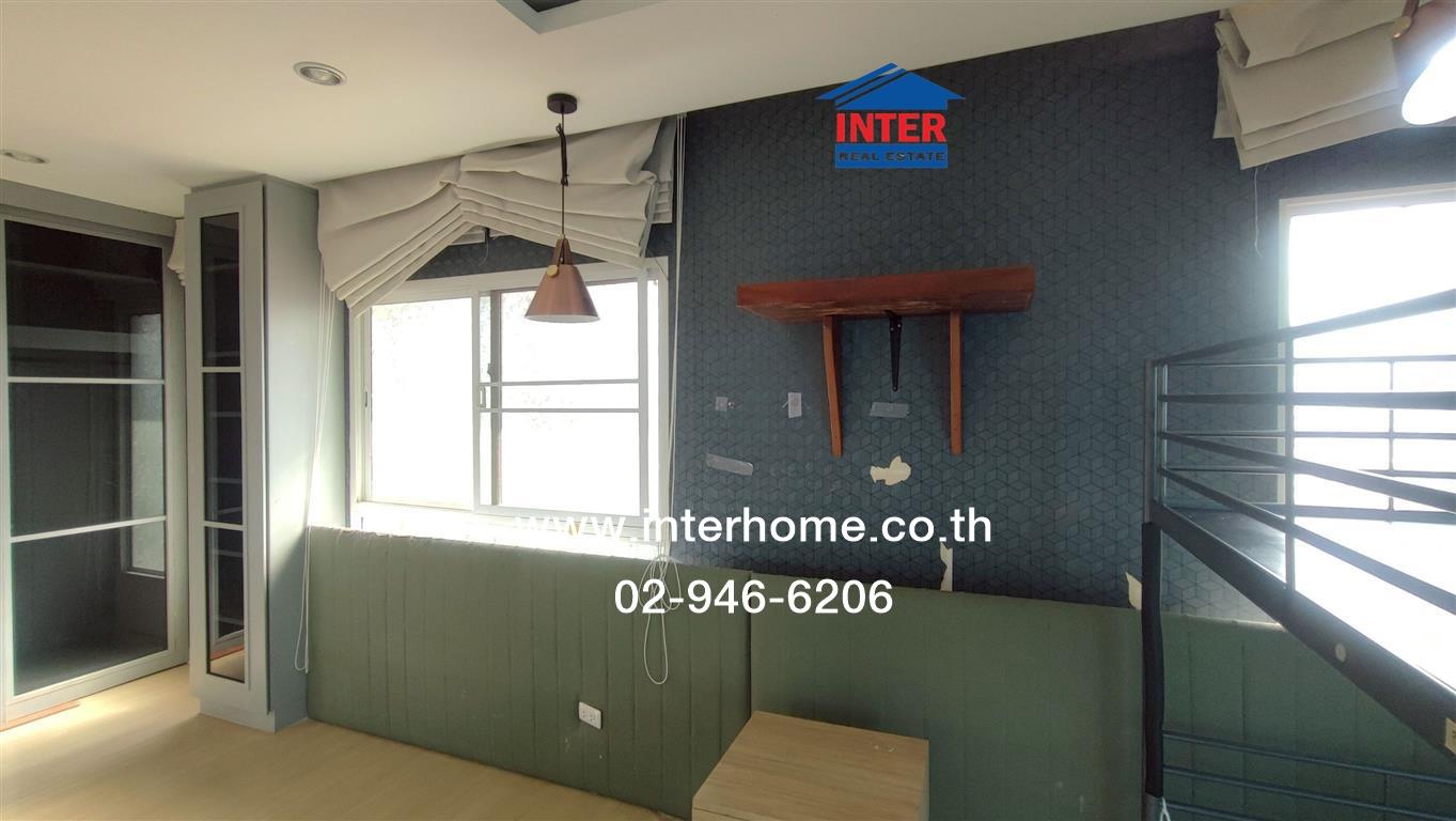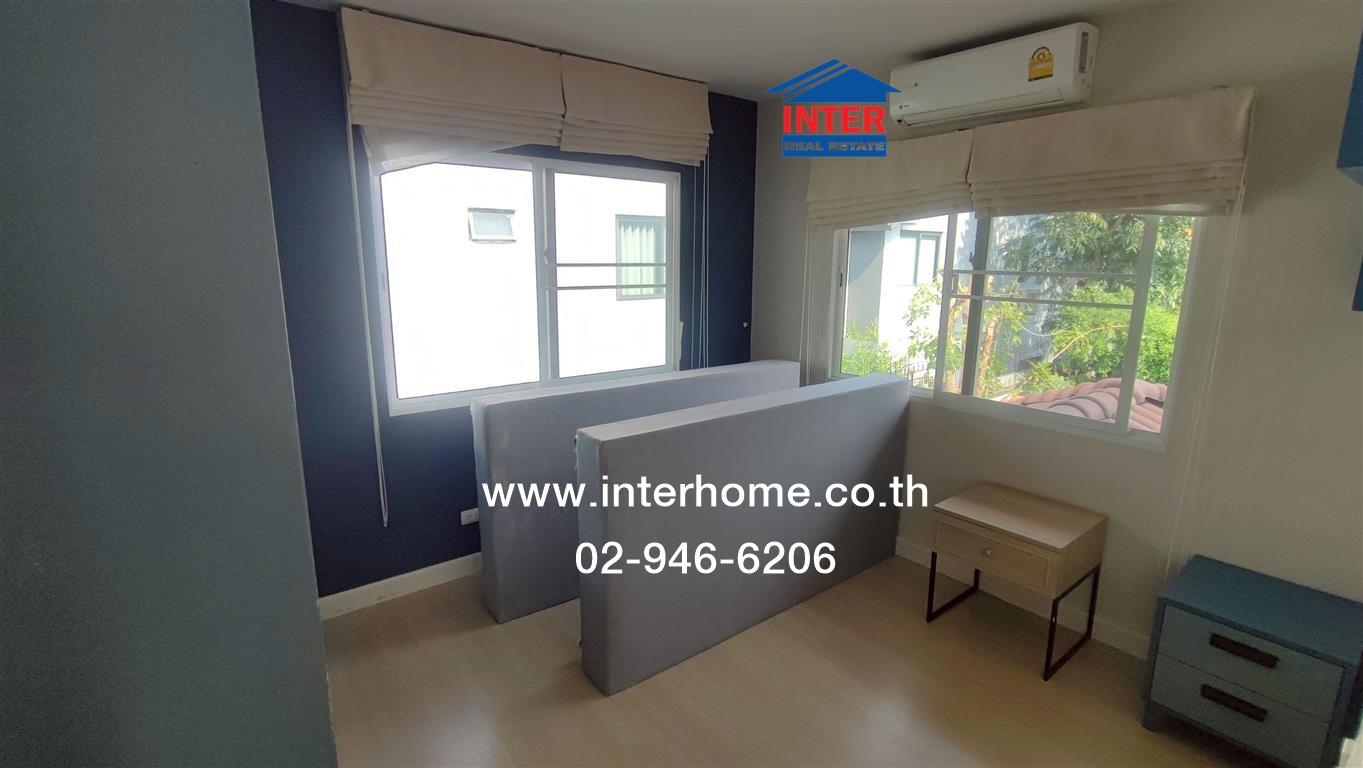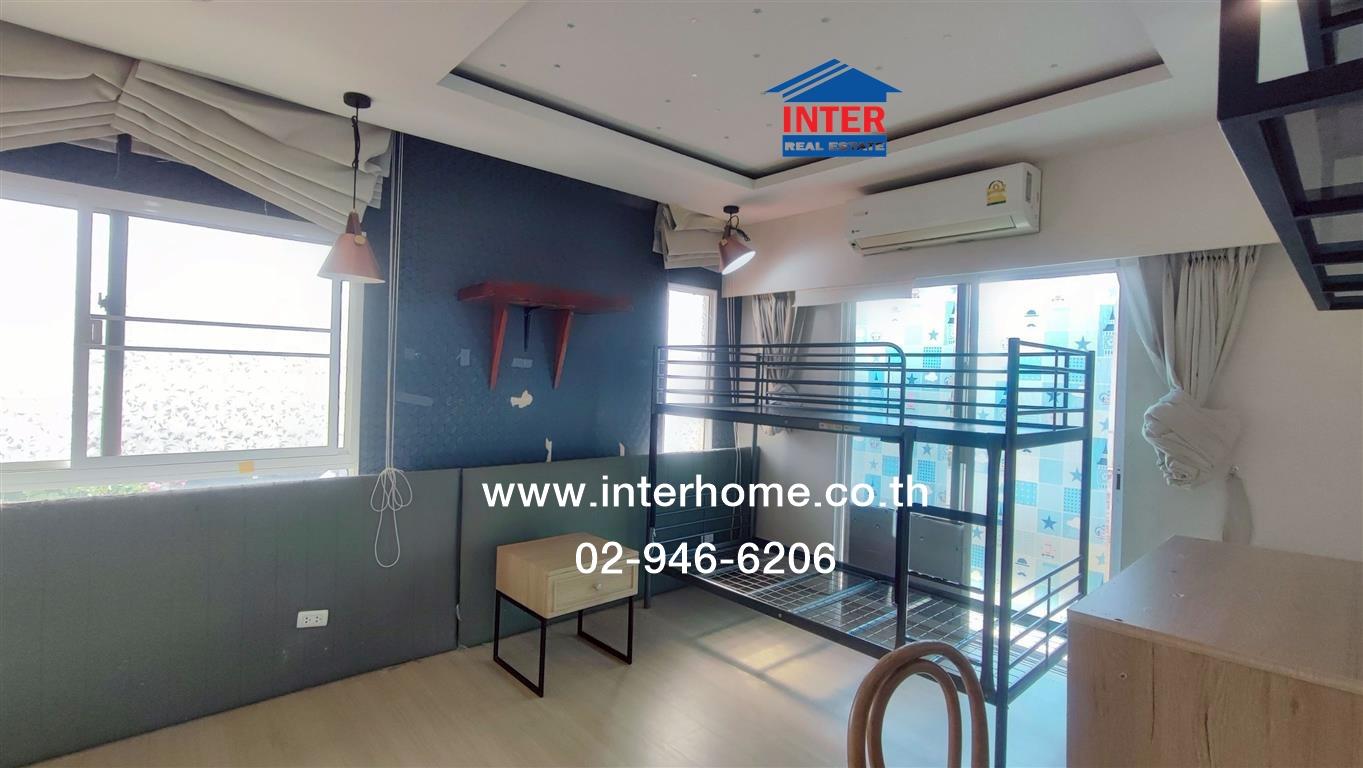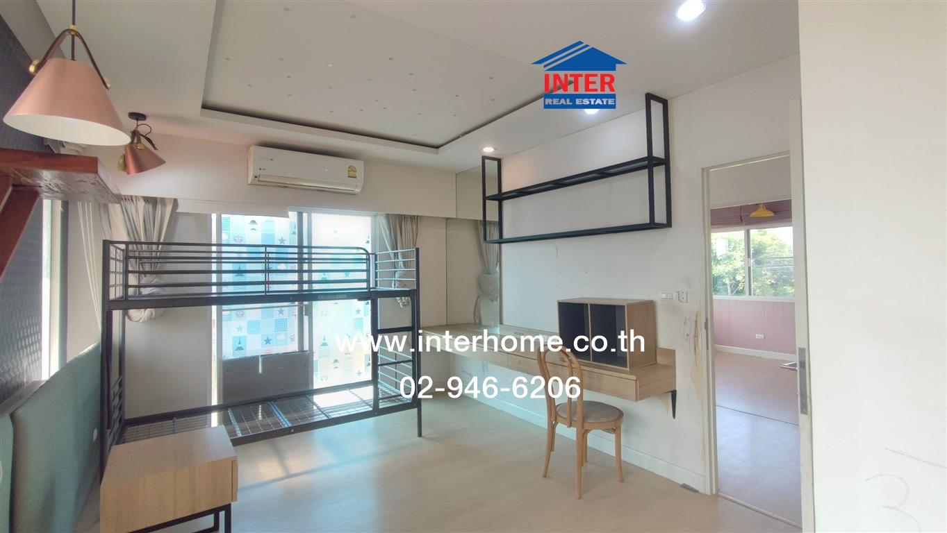ชั้น 2 ปูด้วยกระเบื้องพื้นลามิเนตทั้งชั้น ห้องนอนใหญ่ built in ตู้เสื้อผ้า built in โต๊ะขนาดยาว พร้อมชั้นวางบริเวณด้านบน และยังมีเตียง 2 ชั้น
