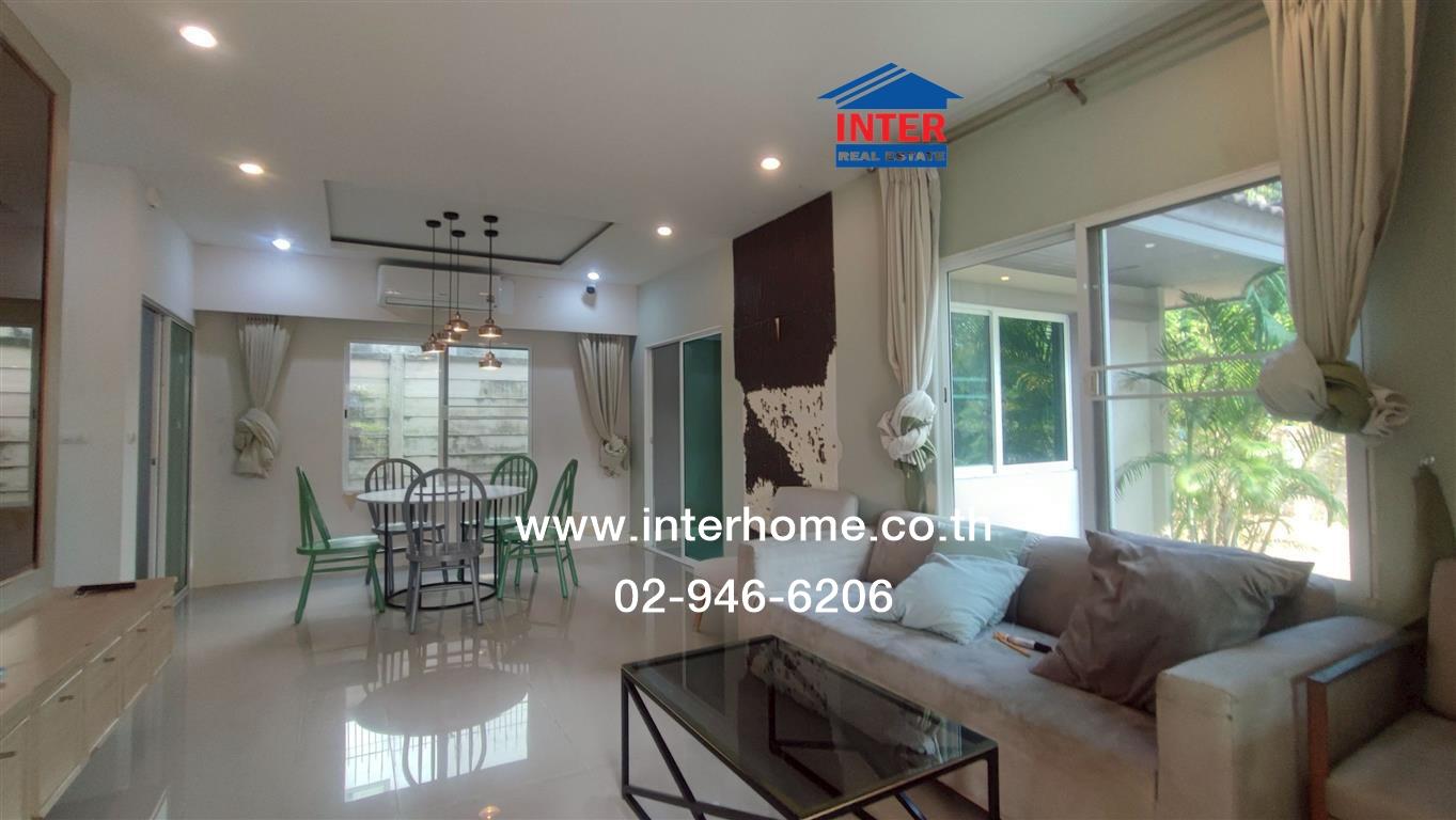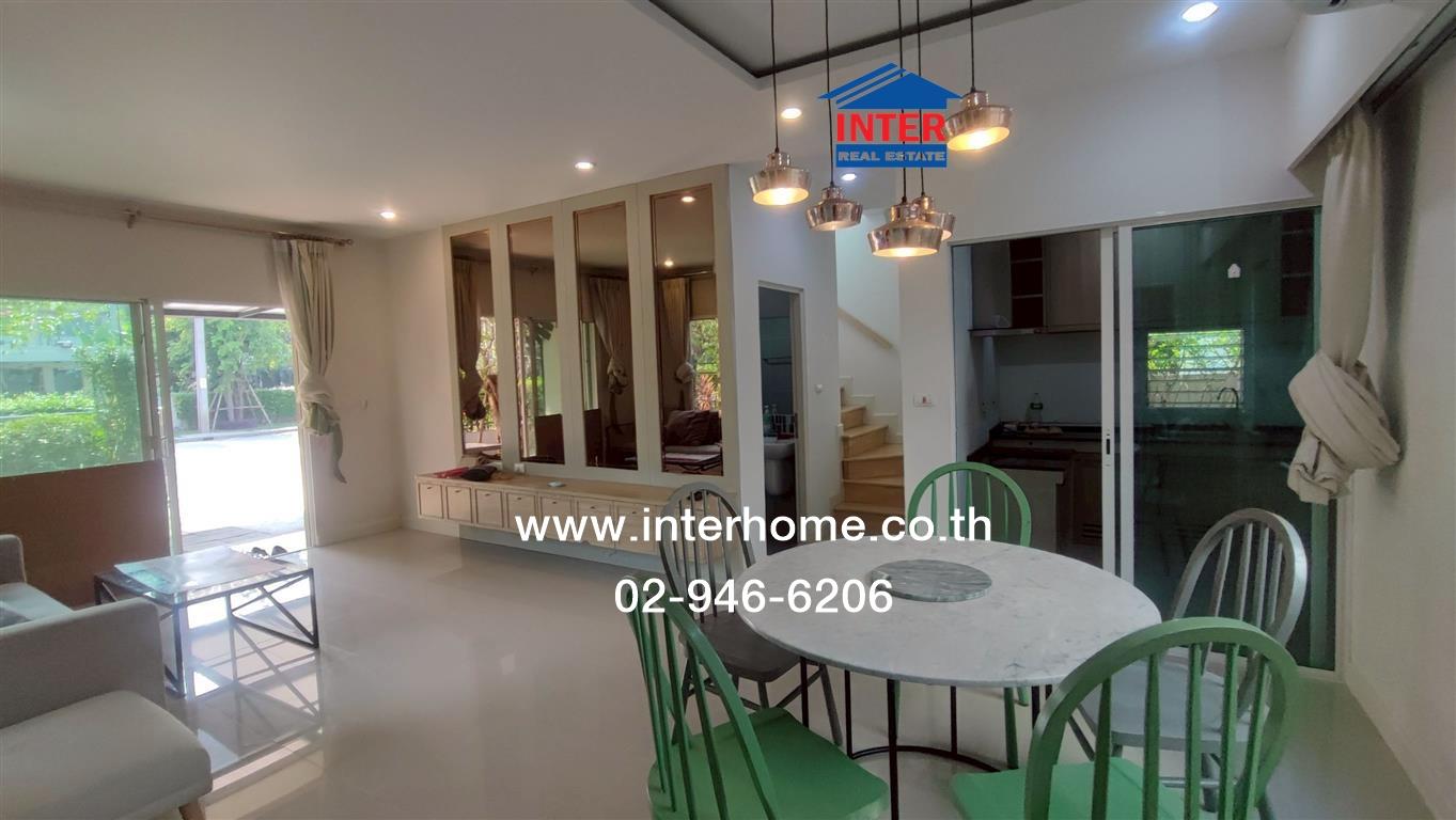 ชั้น 1 ปูด้วยแกรนิตโต้ไซส์ใหญ่ ตกแต่ง built in ผนังฝั่งด้านชั้นวางทีวี พร้อมตู้ลอยเก็บของ ตกแต่งโคมไฟบริเวณโต๊ะทานข้าว ห้องนอนชั้นที่ 1 built in ตู้เสื้อผ้าและโต๊ะเครื่องแป้ง