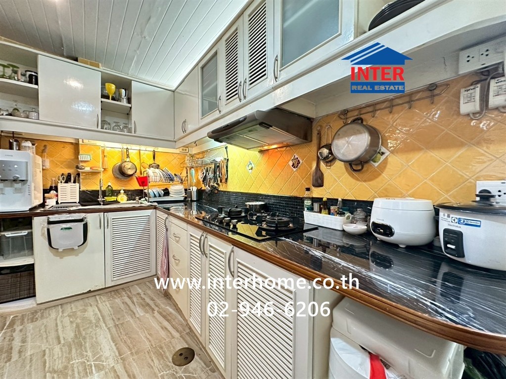 • - ด้านหลังต่อเติมเต็มเคาน์เตอร์ครัว บิวท์อินขนาดใหญ่พร้อมใช้งาน