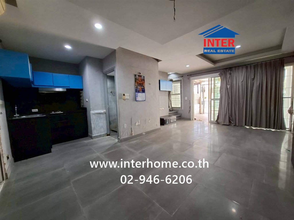 • ทาวน์โฮม 2 ชั้น 3 นอน 2 น้ำ ชั้นล่างปูพื้นกระเบื้อง ชั้นบนปูพื้นลามิเนต